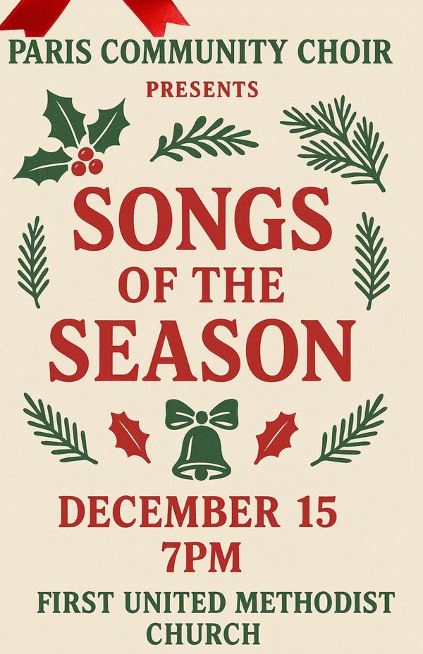 Paris Community Choir and Paris High School Choir join forces again this year to present a beautiful holiday concert. Click below for tickets and more information.