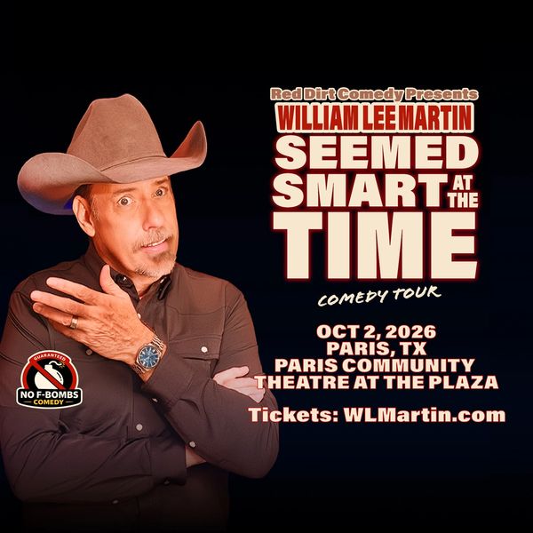 A Texas native with four hit comedy specials (including two on Amazon Prime and a new one on YouTube), William has built a loyal following with his warm, relatable storytelling and sharp observations. This tour is a one-man comedy experience audiences walk away talking about—and recommending to friends.